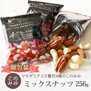 マカダミ入 4種 ミックスナッツ 256g 無塩 素焼き 小分け 個包装 アーモンド ピーカンナッツ マカダミア