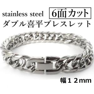 ステンレス 6面カット ダブル 喜平ブレスレット 中折れジョイント 鏡面仕上げ 幅 12mm シルバー