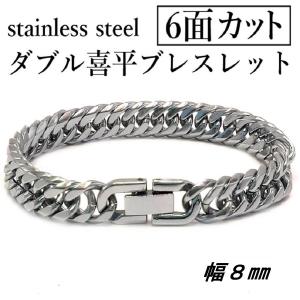 ステンレス 6面カット ダブル 喜平ブレスレット 中折れジョイント 鏡面仕上げ 幅 8mm シルバー