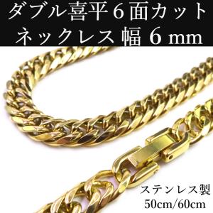 ステンレス ダブル喜平 ゴールド ネックレス 鏡面仕上げ 6面カット 中折れジョイント 金 幅6mm