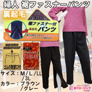 シニア 服 ファッション 婦人 裏起毛 すそ ファスナー パンツ ズボン 裾 ひざ出し 暖か リハビリ ウエストゴム