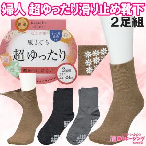 婦人 超ゆったり 同色 2足組 すべり止め 付き 靴下 あいもの 綿混 伸縮性 転倒 予防 防止 クリックポスト