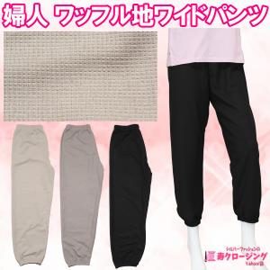婦人 ワッフル地 ワイド パンツ 薄手 ウエストゴム すそゴム 伸縮性 スウェット ズボン 春 夏 秋口 クリックポスト