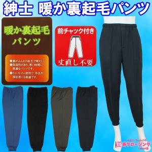 紳士 暖か 裏起毛 パンツ 丈直し不要 ウエスト ゴム 紐 前ファスナー付き すそ 絞り ズボン 秋 冬 シニア