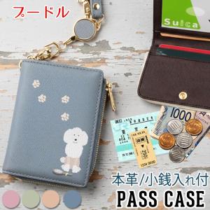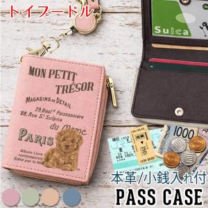 パスケース 本革 リール付き 定期入れ 二つ折り 【 プードル 】 犬 レディース 入学祝い 就職祝い プレゼント おしゃれ 2枚 ICカードケース 東京アンティーク