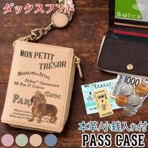 パスケース 本革 リール付き 定期入れ 二つ折り 【 ダックスフンド 】犬 ヴィンテージドッグ レディース 入学祝い 就職祝い かわいい おしゃれ 東京アンティーク
