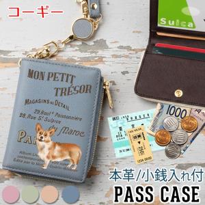 パスケース 本革 リール付き 定期入れ 二つ折り 【 コーギー 】犬 ヴィンテージドッグ レディース 入学祝い 就職祝い かわいい おしゃれ 東京アンティーク