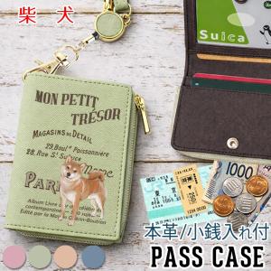 パスケース 本革 リール付き 定期入れ 二つ折り 【 柴犬 】犬 ヴィンテージドッグ レディース 入学祝い 就職祝い かわいい おしゃれ 東京アンティーク