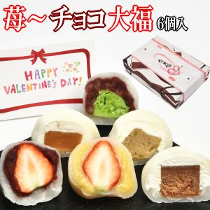 バレンタイン お菓子 和菓子 2026 ギフト イチゴ 苺 カスタード/粒あん いちご大福 チョコ/生キャラメル 大福 抹茶/栗きんとんクリーム 大福 各1個 合計 6個