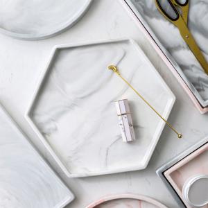 大理石 トレー 六角 アクセサリートレイ おしゃれ デザートプレート 鍵置き場 玄関 おしゃれ おもてなし食器 インテリア おしゃれ 一人暮らし