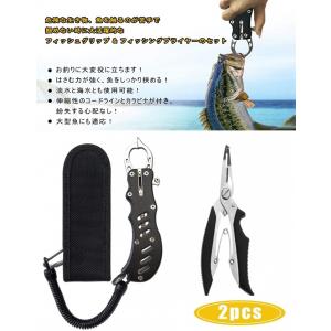 フィッシュグリップ フィッシングプライヤー 釣り具2点 セット ステンレス製 収納ケース 安全ロープ付き 持ち運び便利