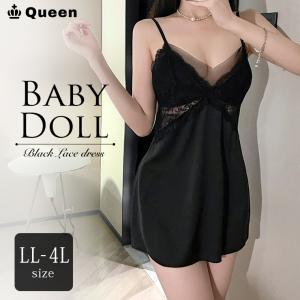 ベビードール 大きいサイズ レディース 下着 セクシー キャミワンピ ネグリジェ サテンレース LL 3L 4L
