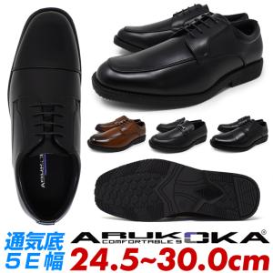 ビジネスシューズ 5E 幅広 メンズ 黒 茶 通気性 ダービー ストレートチップ ビットローファー Uチップ 外羽根 通気 蒸れない インソール 滑りにくい ARUKOKA