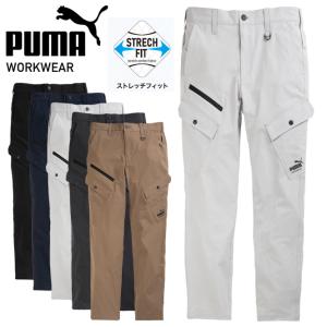 作業ウェアPUMA カーゴパンツ メンズ 作業着 作業服 作業ズボン PUMA WORKWEAR プーマワークウェア ストレッチ ロゴ ポケット 収納 多い 大容量 Dカン付き
