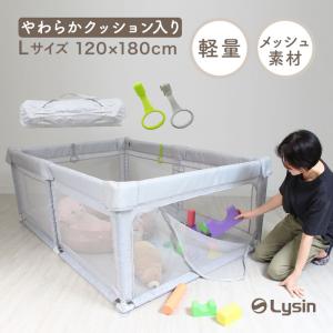 (年に一度の総決算 セール&最大10倍)(改良版)(レビュー投稿で1年保証) ライシン ベビーサークル ハイタイプ メッシュ グレー Lサイズ 吊り輪 収納袋 付属