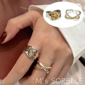 指輪 太め おしゃれ レディース メンズ リング セット フリーサイズ サイズ調整 大ぶり 大きいサイズ 金属アレルギー対応 シルバーリング シルバー925 シルバー