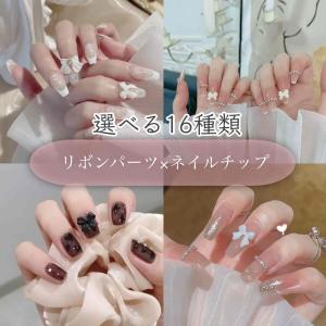 ネイルチップ 赤 リボン ロング スクエア 韓国 ショート 成人式 貼るだけ 可愛い キラキラ シンプル オシャレ 大人 ブライダル 量産型 地雷 バレリーナ つけ爪