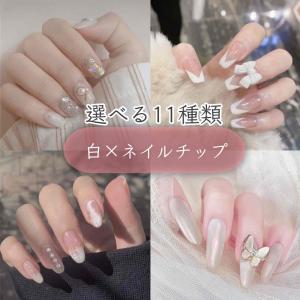 ネイルチップ 韓国 ロング ショート 成人式 ブライダル 可愛い ネイルチップ 白 ホワイト ラウンド オーバル キラキラ 地雷 量産型 結婚式 秋冬 日常 付け爪
