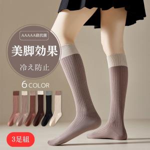 ハイソックス 靴下 3足セット レディース 暖かい 送料無料 無地 綿 シンプル 抗菌防臭 美脚 おしゃれ 通学 通勤 ブラック ベージュ カーキ