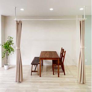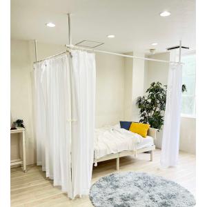 突っ張り パーテーション 部屋 仕切り つっぱり カーテンポール カーテンリング付 耐荷重最大70kg 縦107.5-267cm 横106-263cm (3ポール+カーテン4枚付き)
