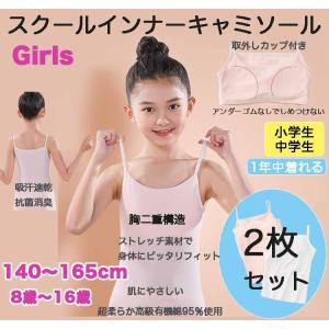 タンクトップ 女の子 キャミソール 2枚セット インナー 女子 ジュニア 肌着 140 150 160 小学生 パットつき スクールインナー 体育インナー 下着