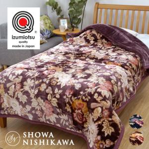 西川 毛布 シングル 日本製 2枚合わせ 泉大津産 昭和西川 綿入りアクリル毛布 2.7kg ふわとろ ブランケット 厚手 花柄 22305-1951