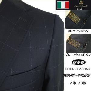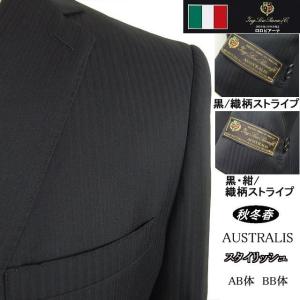 【YA体】【A体】【AB体】【春夏秋】スタイリッシュタイプ【Loropiana ロロピアーナ〜FOUR SEASONS】 2ボタンシングルスーツ/黒織柄ストライプ