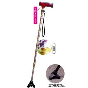 安心ステッキ さんさ 白花柄 伸縮タイプ 高さ調節102-79cm 10段階 軽量 三つ股先ゴム 歩行補助 つえ おしゃれ 敬老の日 ギフト 母の日