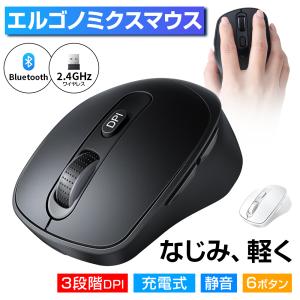 【特典あり!】 マウス ワイヤレスマウス 無線 bluetooth エルゴノミクス 6ボタン 戻る・進むボタン搭載 DPI切替 800/1200/1600 静音クリック Windows Mac 対応