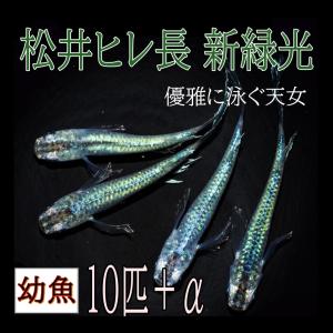 メダカ 松井ヒレ長 新緑光 幼魚 10匹+α 改良めだか グリーン 最高級メダカ