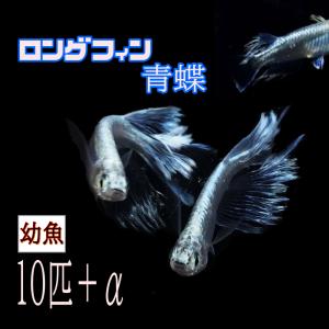 メダカ ヒレ長ロングフィン青蝶 幼魚 10匹+α 改良めだか 長くきれいな鰭
