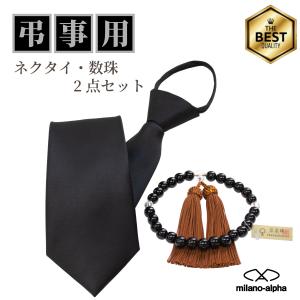 ネクタイ 黒 葬儀 ワンタッチネクタイ 数珠 黒ネクタイ 2点セット メンズ 紳士用 男性用 フォーマル 無地 略式数珠 27玉 じゅず 念珠 珠数
