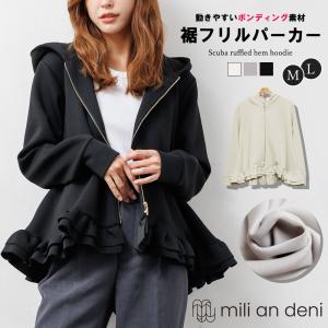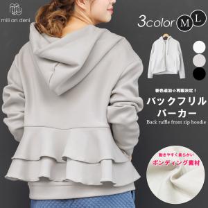 スクーバ裾フリルパーカー レディース 前開きジップパーカー トップス ライトアウター 長袖 ポイント消化 爆買