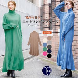 ニットワンピース レディース マーメイドライン ロング丈 ハイネック 指穴 ポイント消化