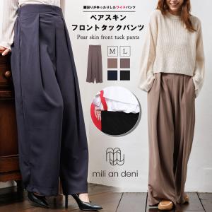 アウトレット フロントタックパンツ レディース ボトムス ペアスキン素材 ワイドパンツ フレアパンツ (ネコポス) ポイント消化