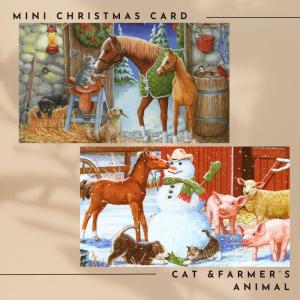 猫と牧場の動物たちのミニクリスマスカード レーニンツリー