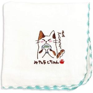 みたらしちゃん タオルハンカチ 青(湯のみ)ハンドタオル 綿100% 日本製 可愛い 猫 ねこ