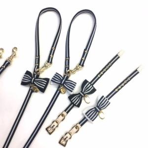 首輪&リードセット 犬 おしゃれ かわいい 小型犬 中型犬 首輪 リード ボーダーリボン 日本製 ミントタン minttan