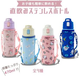 水筒 子供 キッズ ステンレス 直飲み 魔法瓶 女の子 肩紐 カバー付き キティ マイメロ シナモンロール ドラえもん