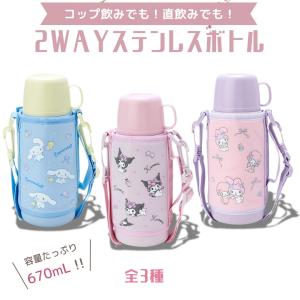 水筒 子供 キッズ 2WAY 直飲み 魔法瓶 女の子 コップ付き 肩紐 カバー付き 500ml サンリオ マイメロディ