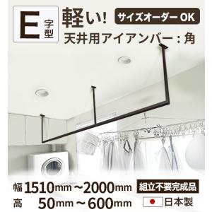【 E字型3 】【 10mm刻みでサイズが選べる天井アイアンバー 】【 幅1510~2000mm 】オーダー 室内 物干し バー 黒 ホワイト ランドリー 洗濯干し 受注生産 日本製