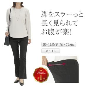 パンツ レディース 大人 ストレッチ きれいめ ブーツカット フレアパンツ 日本製 柄パンツ ハイテンションパンツ ウエストゴム ロングパンツ