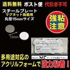 スチールプレート 丸型15mmΦ(マグネット吸着用)シルバー ポスト便 送料無料 10枚入 AC12M