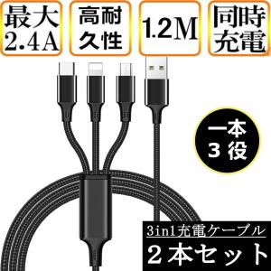 2本セット 充電ケーブル 3in1 充電ケーブル iPhone タイプc 急速 Android Type-C 1.2m 急速充電