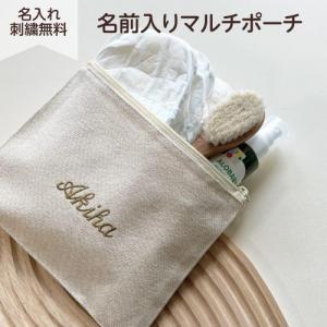 【マルチポーチ】名入れ ギフト 刺繍 文房具 シンプル出産祝い 母子手帳入れ オムツポーチ