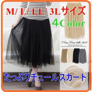 ロング丈 チュールスカート M L LL 3L 大きいサイズ レディース フォーマル フリーサイズ フレアー Aライン 卒業式 服 母 秋 同窓会 ブラック 入学式 ふんわり
