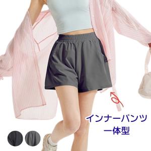 ショートパンツ レディース インナーパンツ付き 一体型 ヨガパンツ ルーズ ジムウェア スポーツ ゴルフ テニス ボウリング トレパン ヨガウェア