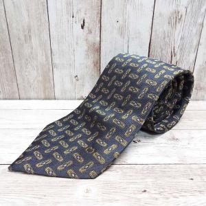 【ゴージャス系ネクタイ】MCM(エムシーエム)ブランドロゴ入り総柄ネクタイ|ブルーゴールド系|イタリア製|シルク100%|USED