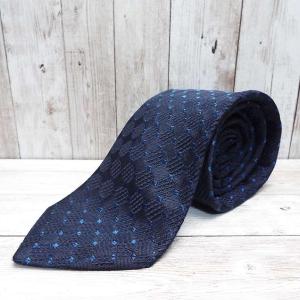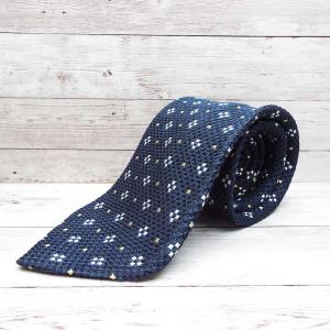 ◎ワッフル素材◎日本製 ARTE VIA アルテビア 小紋総柄ネクタイ ネイビー シルク100%【USED】メンズ古着 ポイント消化