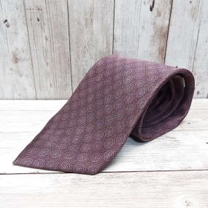 ◎昭和レトロ・古典模様◎UN KNOWN 幾何学模様 パターン総柄ネクタイ エンジ・ブロンズ【USED】メンズ古着 オールドネクタイ